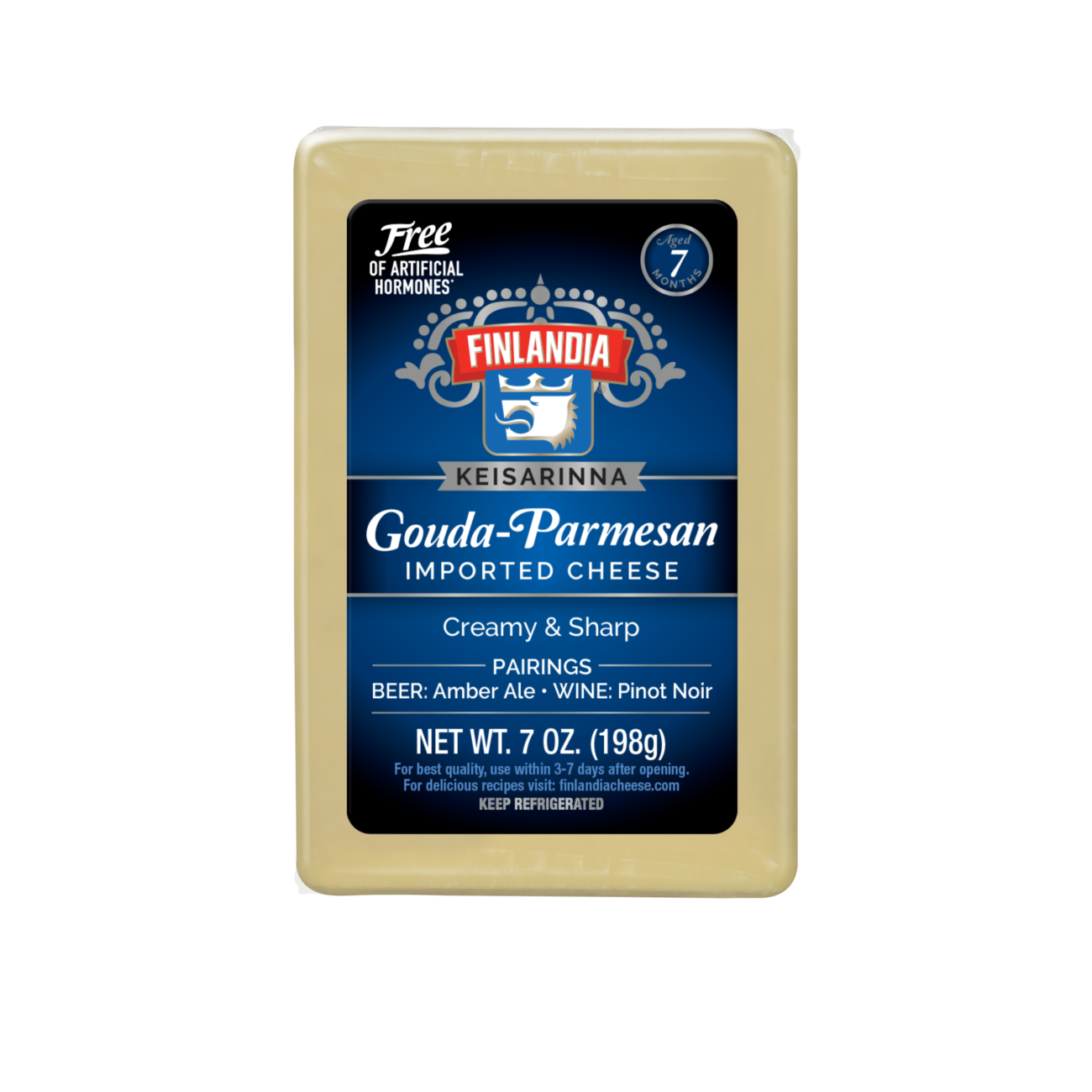 Keisarinna is the Finnish word for Empress, and suits this cheese perfectly. Made with pure fresh milk from family-owned farms, Finlandia Imported Gouda-Parmesan provides a distinct delicious flavor combination of creamy sweet Gouda and sharp Parmesan that pairs well with Amber Ale and Pinot Noir.